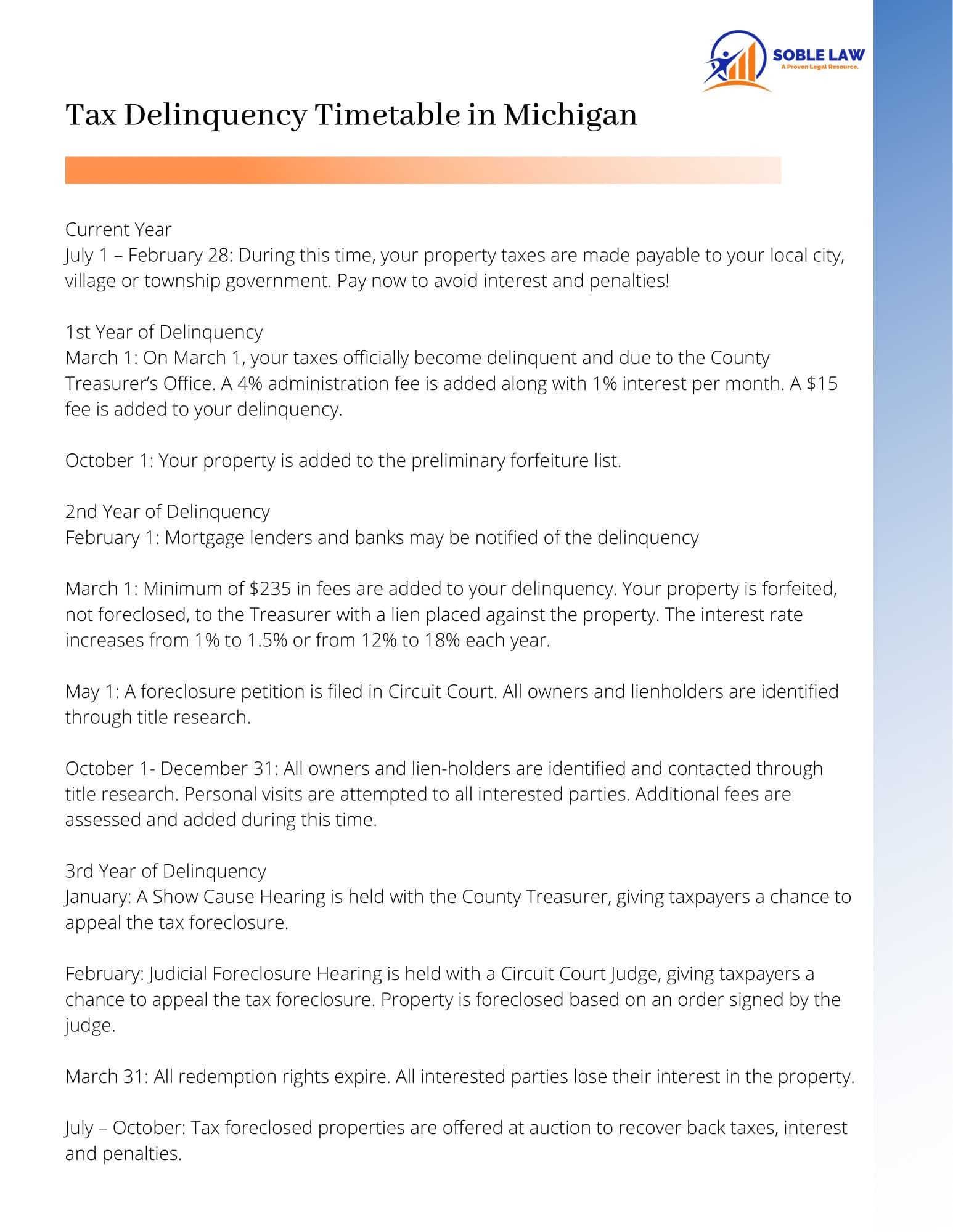 Soble Law, led by attorney David Soble, is a boutique law firm based in Michigan, focused on real estate law, probate, and contract litigation. With over 35 years of legal and big corporate banking experience, David Soble and his legal team offer a niche alternative to large national firms to informed clients who value senior-corporate-level counsel, financial and realty-industry insight, and education-forward service. They provide practical legal solutions that protect clients' property and financial interests. Known for their no-nonsense approach, the firm represents individuals, families, and businesses across Michigan and Ohio, offering clear guidance through complex legal matters.